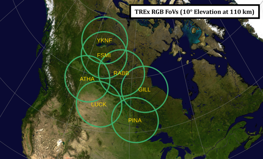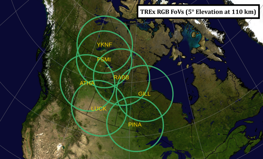 TREx-RGB (Red, Green, Blue) is part of the Canada Foundation for Innovation, Transition Region Explorer (TREx) sensor web. The RGB sensors are highly sensitive, broadband, true color detectors that product 3-channel (RGB) ASI images. RGB operates at a nominal cadence of 3s but is capable of 3Hz burst-mode acquisition. Burst mode data is recorded regularly and can be found in the RGB data tree.
